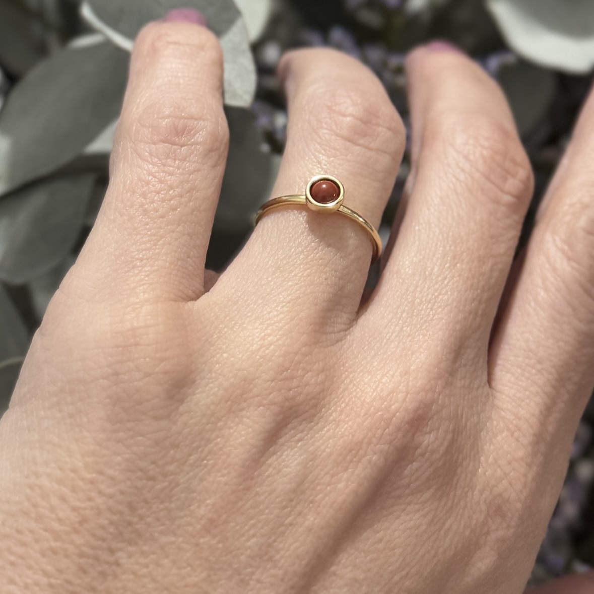 Anel de Prata banhado a ouro de Jaspe Vermelho – 4 mm